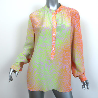 Stella McCartney Eva Blouse Pink Coral Print Silk Size 36 Long Sleeve Top