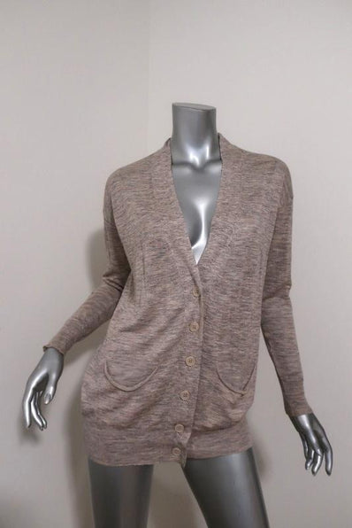 Stella McCartney Cardigan Beige Marled Silk-Linen Size 36 V-Neck Sweater