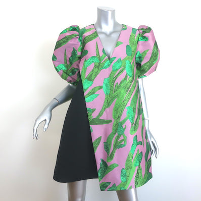 Stine Goya Brethel Puff Sleeve Dress Pink Metallic Jacquard Size Extra...