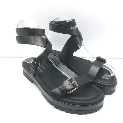 Irina Shayk x Tamara Mellon Sand Dune Ankle Strap Sandals Black Leathe...