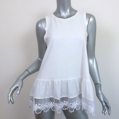 Thakoon Ruffled Lace-Hem Tank Top White Cotton Jersey Size Small