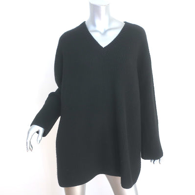 The Row Cashmere Waffle Knit Sweater Black Size Large V-Neck Pullover