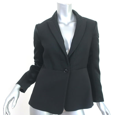 The Row Mixed Media Blazer Black Satin & Pique Size 4 One Button Jacket