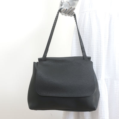 The Row Top Handle 14 Shoulder Bag Black Grained Leather
