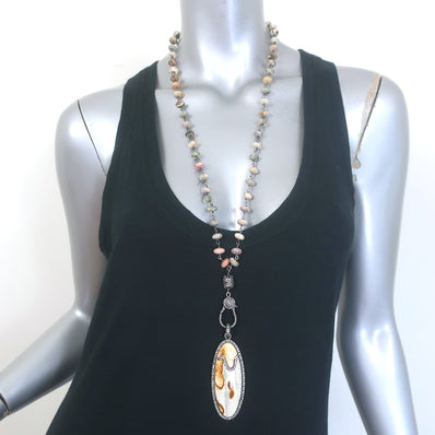 The Woods Beaded Pave Diamond Marble Pendant Necklace Cream