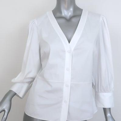 Theory Gathered Sleeve Button-Front Top White Stretch Cotton Size Small