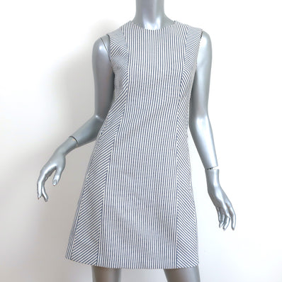 Theory Helaina Sleeveless Mini Dress Navy/White Striped Stretch Wool S...
