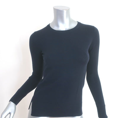 Theory Crewneck Sweater Navy Kralla Evian Stretch Wool Knit Size Petite