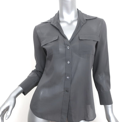 Theory Button Down Shirt Gray Stretch Cotton Size Petite 3/4 Sleeve Top