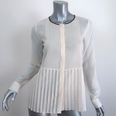 Theory Blouse Zirana Cream Pleated Stretch Chiffon Size Small Long Sle...
