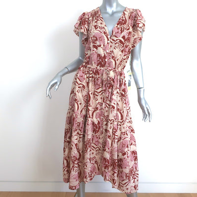 Trovata Birds of Paradis Kristi Midi Dress Canela Palm Print Size Smal...