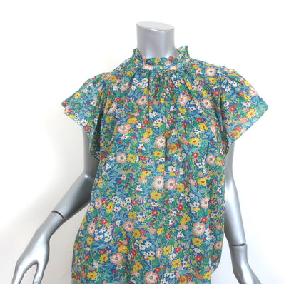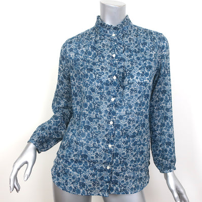 Trovata Birds of Paradis Ruffle Trim Shirt Blue Floral Print Size Small