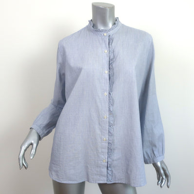 Trovata Birds of Paradis Helena Ruffle-Trim Shirt Blue Pinstripe Size ...