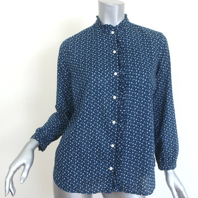 Trovata Birds of Paradis Ruffle Trim Shirt Navy Floral Print Size Small