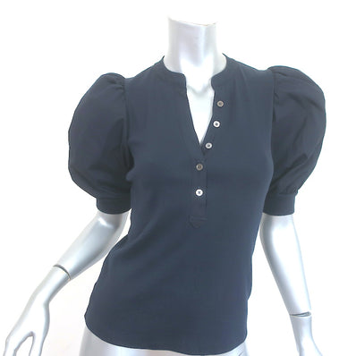 Veronica Beard Coralee Puff Sleeve Top Navy Stretch Cotton Size Extra ...