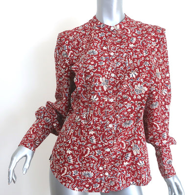 Veronica Beard Drela Button-Up Blouse Red Printed Silk Size 6 Long Sle...
