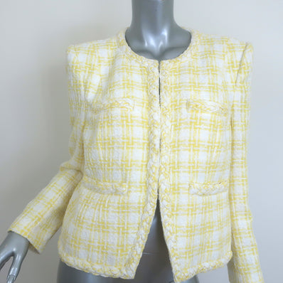 Veronica Beard Bryne Tweed Jacket Yellow/White Plaid Size 12