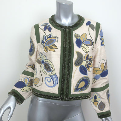 Veronica Beard Benicia Embroidered Silk Jacket Cream/Multi Size 8