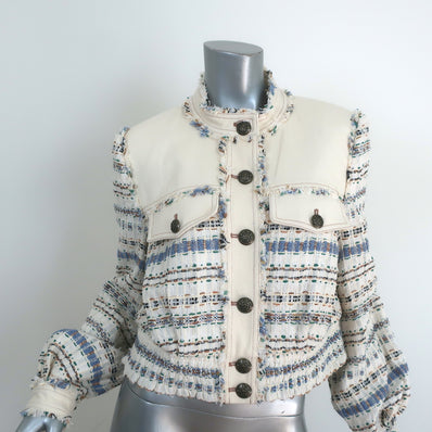 Veronica Beard Darren Tweed Cropped Jacket Ecru Cotton-Blend Size 10 NEW