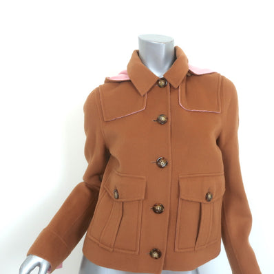 Veronica Beard Cropped Jacket Warren Camel/Pink Wool-Cashmere Size 6 NEW