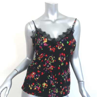 Veronica Beard Cami Gil Black Floral Print Stretch-Silk Size 2 V-Neck ...