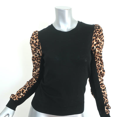 Veronica Beard Adler Mixed Media Sweater Black/Leopard Size Extra Small