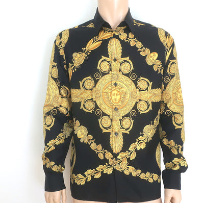 Versace Heritage Fit Barocco Print Shirt Black/Gold Silk Twill Size 48