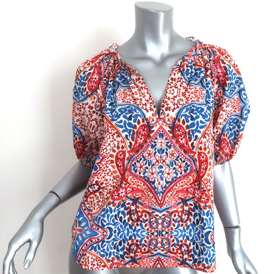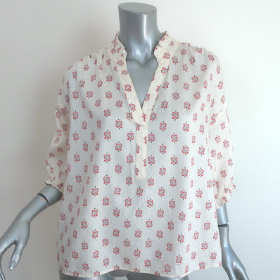Xirena Top Kora Navy/Red Printed Cotton-Silk Size Small Long Sleeve Bl...