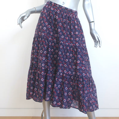 Xirena Iris Tiered Midi Skirt Navy Printed Cotton-Silk Size Medium