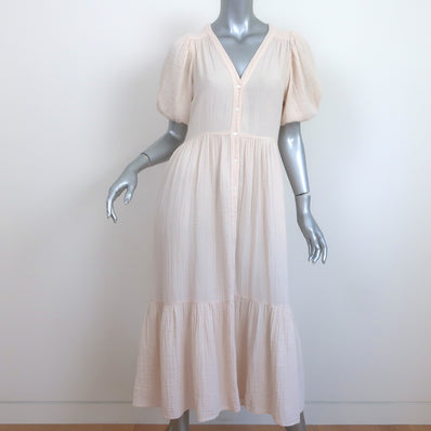 Xirena Smocked Long Sleeve Maxi Dress Ecru Cotton Gauze Size Medium