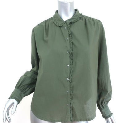 Xirena Shirt Hale Dark Sage Ruffled Cotton Size Extra Small Long Sleev...