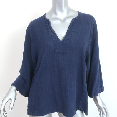 Xirena V-Neck Top Navy Cotton Size Extra Small 3/4 Sleeve Blouse