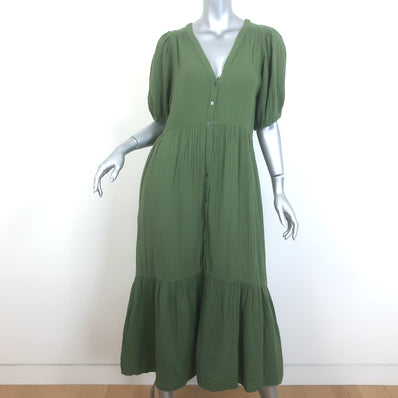 XIRENA Lennox Tiered Midi Dress Green Cotton Gauze Size Medium