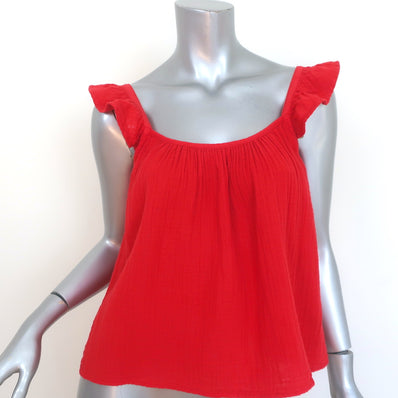 Xirena Rue Ruffle Tank Top Apple Red Cotton Gauze Size Small NEW