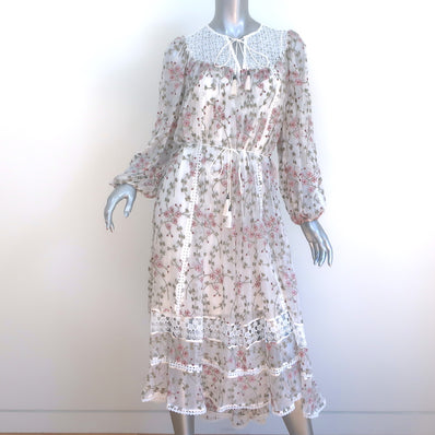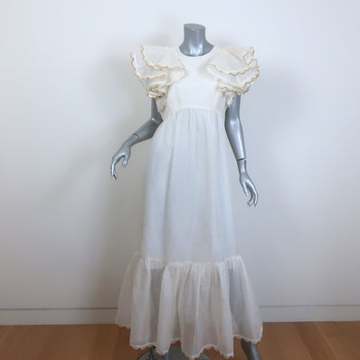 Zimmermann Embroidered Midi Dress Lovelorn Cream Ruffled Silk Size 3