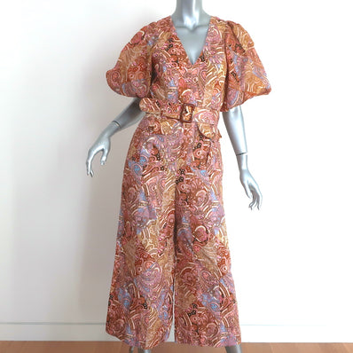 Zimmermann Concert Belted Jumpsuit Multicolor Paisley Print Linen Size 1
