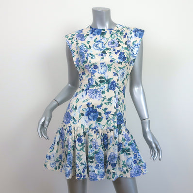 Zimmermann Flounce Mini Dress Moncur Cream/Blue Floral Print Linen Size 0