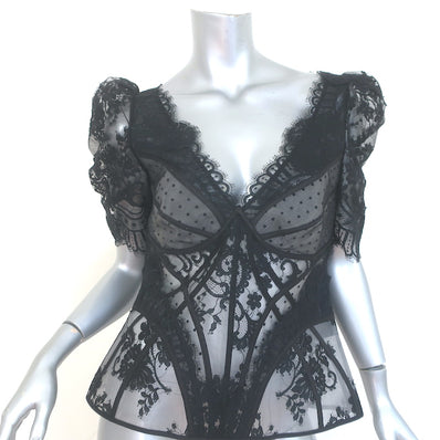 Zimmermann Dancer Lace Puff Sleeve Blouse Black Size 2