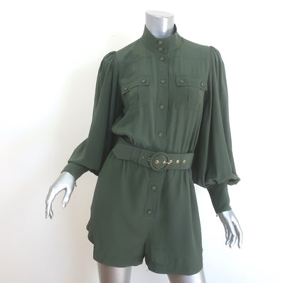 Zimmermann Espionage Utility Belted Romper Army Green Silk Crepe de Ch...