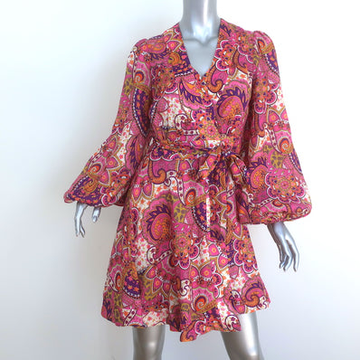 Zimmermann Fiesta Mini Wrap Dress Pink Paisley Print Linen Size 1