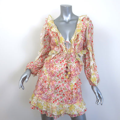 Zimmermann Goldie Cutout Mini Dress Ruffled Floral Print Linen Size 0