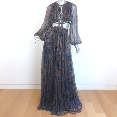 Zimmermann Esplanade Rivet Cutout Maxi Dress Navy Paisley Print Chiffo...