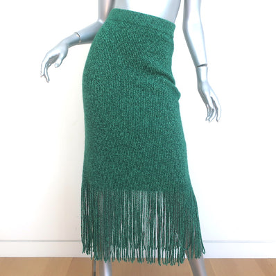 Zimmermann Fringed Knit Midi Skirt Emerald Cashmere-Wool Size 0