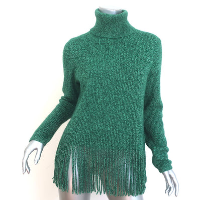 Zimmermann Fringed Turtleneck Sweater Emerald Cashmere-Wool Size 2