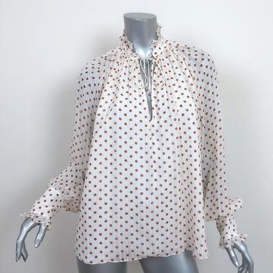 Jonathan Simkhai Monica Blouse Cream Polka Dot Silk Size Medium Long S...