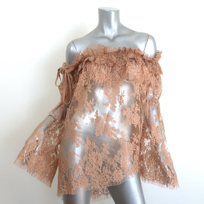 Zimmermann Bowerbird Off the Shoulder Lace Blouse Tan Size 3 Long Slee...