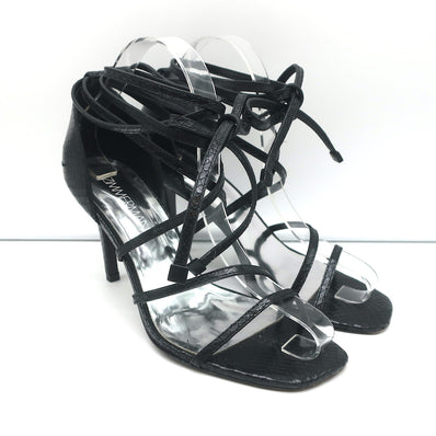 Zimmermann Ankle Tie Sandals Black Snake-Embossed Leather Size 37 Open...