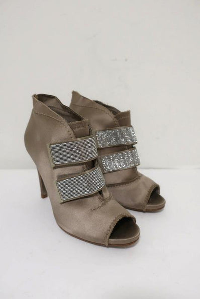 Pedro Garcia Crystal-Embellished Booties Beige Satin Size 38 Peep Toe ...