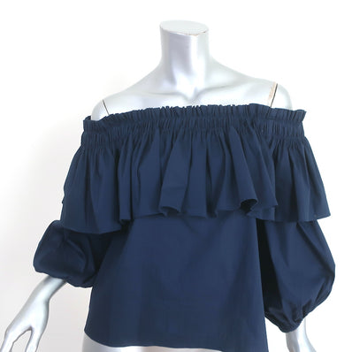 Alexis Barbie Ruffled Off the Shoulder Top Navy Stretch Cotton Size Me...