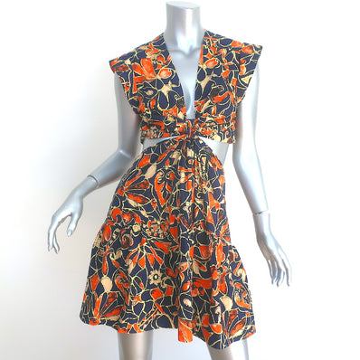 A.L.C. Lexi Cut-Out Mini Dress Navy/Orange Printed Cotton Size 6